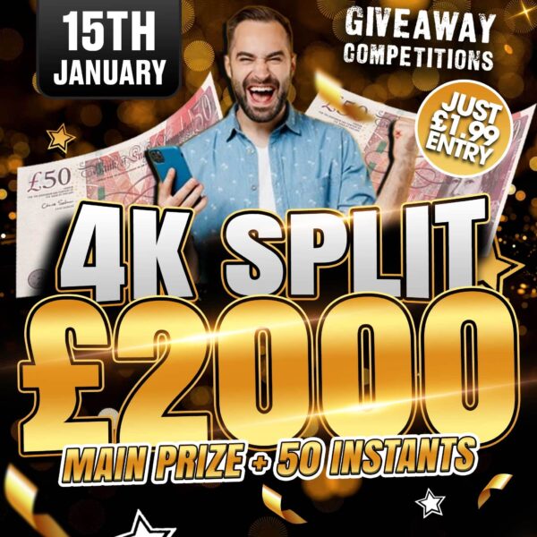 The live draw will take place on the Giveaway Competitions Ltd Facebook page using Google’s random number generator to select the winning ticket number from all Entrants.