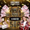 2 Winners of £300 for 50p