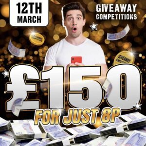 The live draw will take place on the Giveaway Competitions Ltd Facebook page using Google’s random number generator to select the winning ticket number from all Entrants.