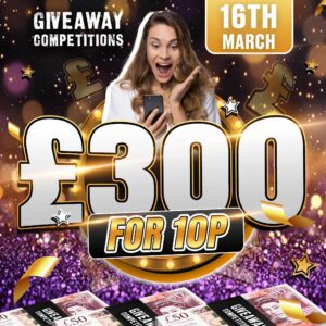The live draw will take place on the Giveaway Competitions Ltd Facebook page using Google’s random number generator to select the winning ticket number from all Entrants.