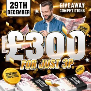 The live draw will take place on the Giveaway Competitions Ltd Facebook page using Google’s random number generator to select the winning ticket number from all Entrants.